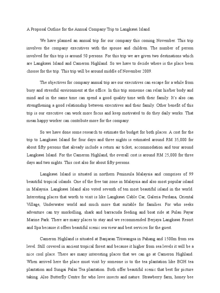 A Proposal Outline For The Annual Company Trip To Langkawi Island Pdf
